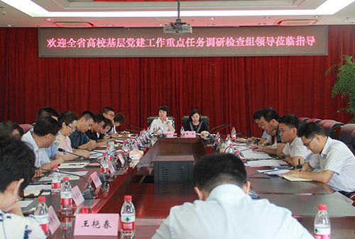 7月3日,全省高校基层党建重点任务调研检查组一行5人,在省委组织部组织二处调研员王长军的带领下,对我校推进落实基层党建重点任务情况进行调研检查。学校党委书记刘德权亲切接见了调研检查组并与检查组成员进行了工作交流。党委副书记蒋晶洁代表学校向调研检查组专题汇报了我校基层党建工作开展情况,学校办公室、党委组织部、党委宣传部、纪委办公室、党委学工部等相关部门负责人、二级党组织书记代表参加汇报会。