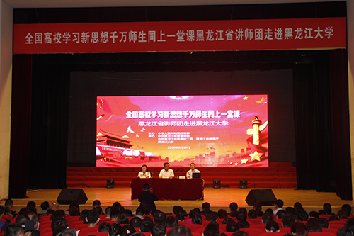为深入学习宣传贯彻习近平总书记在北京大学师生座谈会和纪念马克思诞辰200周年大会上的重要讲话精神,6月19日下午,全国高校“学习新思想、千万师生同上一堂课”黑龙江省讲师团走进我校开展宣讲活动。按照省委高校工委的统一安排,省讲师团成员我校党委书记刘德权,东北林业大学党委学工部部长、学生处处长、武装部部长王春海为我校师生作专题宣讲。全校师生代表1000余人聆听了此次宣讲。宣讲会由校党委副书记丁宏主持。