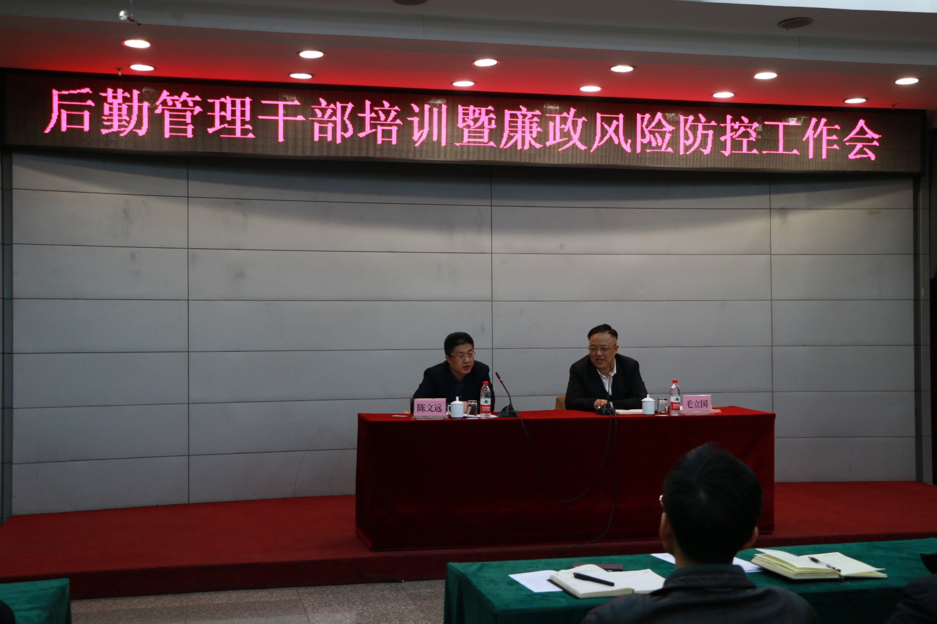 为有效预防腐败,从源头上防止不廉洁行为的发生,切实增强干部职工廉洁从业意识和廉政风险防范能力。4月4日上午,在外事处多功能厅召开黑龙江大学后勤管理干部培训暨廉政风险防控工作会议,陈文远副校长及后勤管理处、校区管理处、黑龙江大学物业经营有限责任公司中层以上干部参加会议。会议还邀请了黑龙江奥隆工程项目管理有限公司董事长毛立国做专题培训。