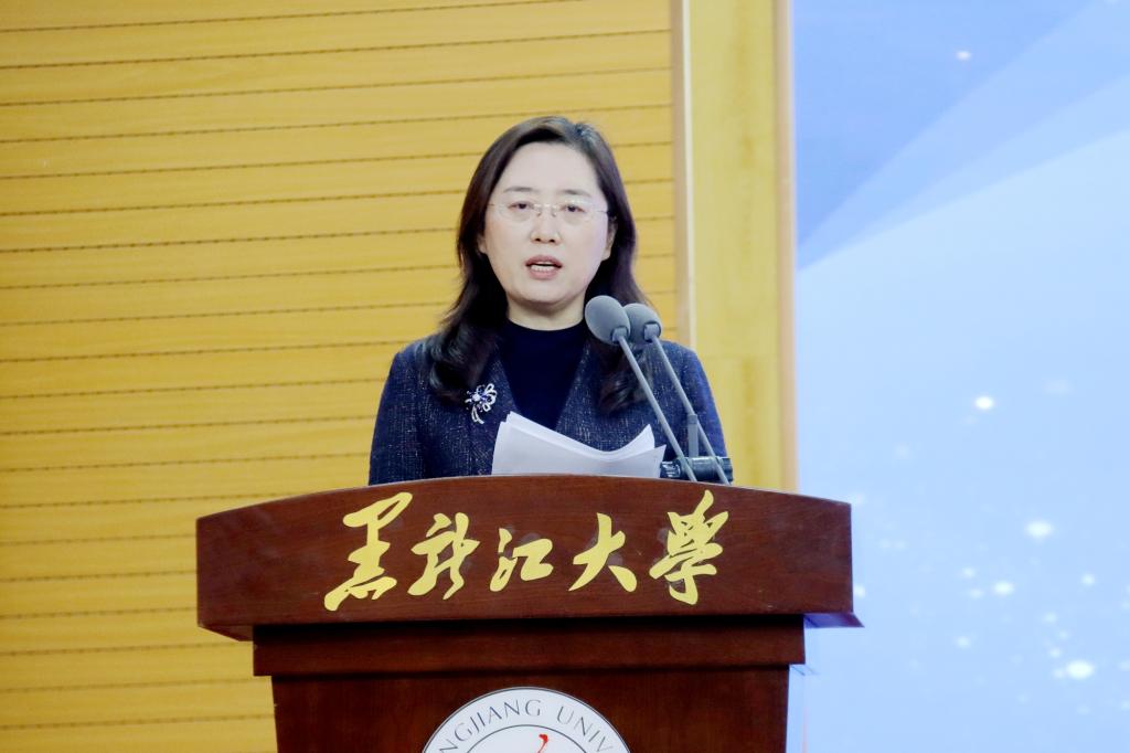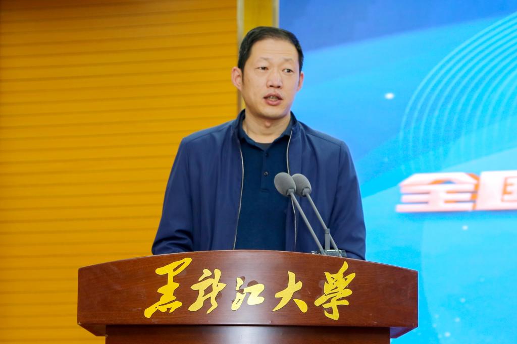省教育厅学生处二级调研员崔志伟致辞。他深刻阐明了“宏志助航计划”项目的重要意义,对黑龙江大学的就业工作给予充分肯定,并对基地培训工作提出具体要求。希望基地切实担负起“宏志助航”政治使命,圆满完成培训任务;希望授课教师全心全意施教,助力毕业生实现更高质量就业和长远发展;希望参训学生珍惜学习机会,将知识转化为实际成效,为经济社会发展贡献智慧和力量。