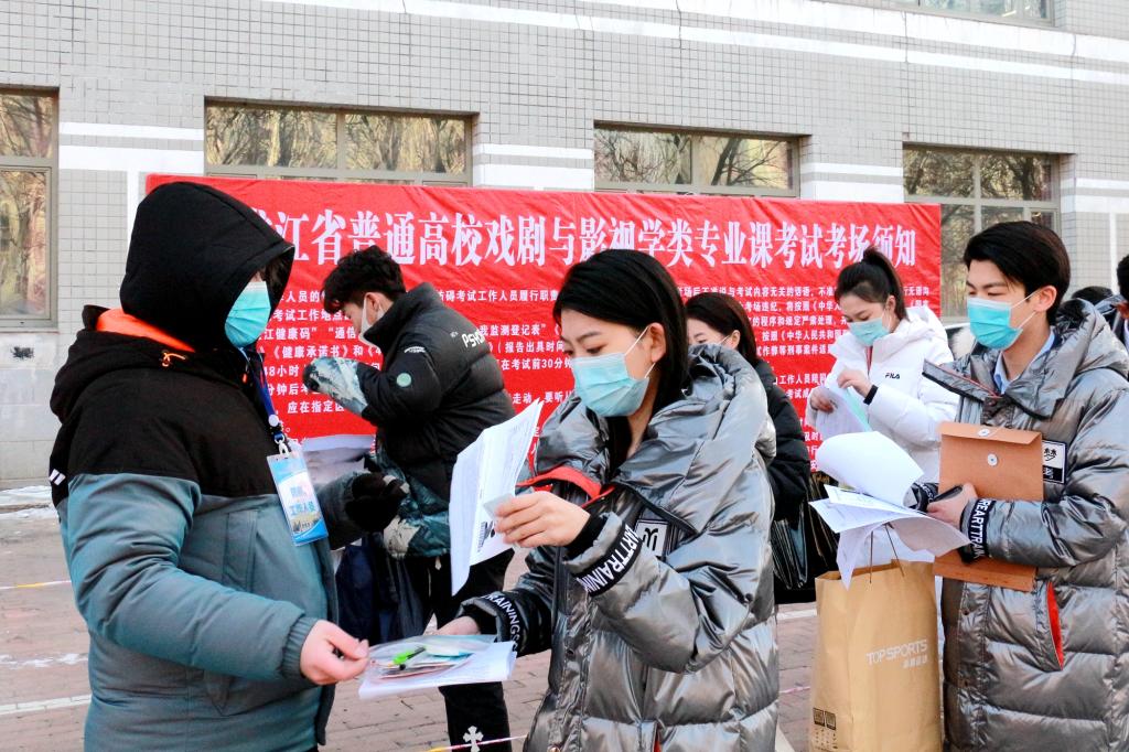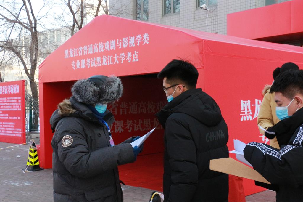 据悉,在本次考试中有两名考生因腿部受伤乘坐轮椅赴考。在得知该情况后,我校第一时间主动与考生对接,迅速建立起“一对一”服务联系,安排指定的考务工作人员抬着考生完成全程考试。温情送考,用爱护航,黑龙江大学考点用实际行动为艺考“追梦人”保驾护航。尽管天气寒冷,学校用贴心、暖心、热心的助考服务与3315名考生间进行了一次爱的传递。