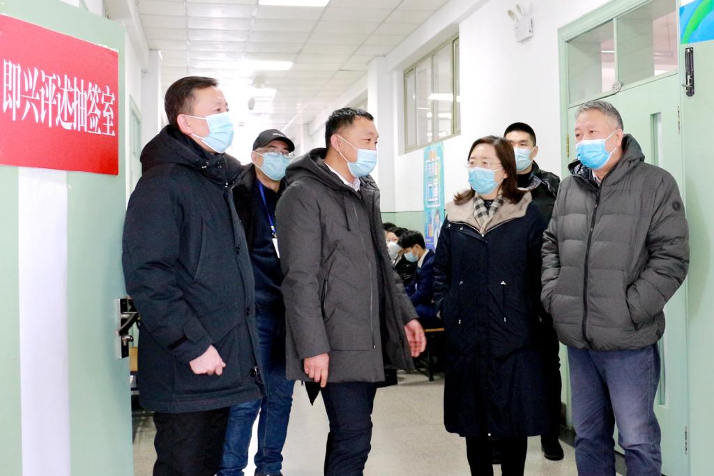 强添刚副院长、陈喜军书记一行从入门测温开始“走流程”,实地查看了备考室、考场、备用考场、隔离室、考务室、监控室及考场外围环境,认真听取了情况汇报,对黑龙江大学考务工作给予充分肯定,尤其对测温、消杀、安检、保暖、通行等细致周到的考生综合服务保障举措给予高度赞扬。