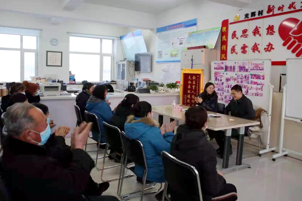调研期间还举办了“党的十九届六中全会精神与乡村振兴”主题党日活动,黑龙江大学经济与工商管理学院院长、博士生导师魏枫教授受邀讲解有关内容。为严格落实疫情防控工作要求,主题党日活动采取线上线下相结合的方式进行,光辉村部分党员代表在现场参加,光辉村和国富村的其他党员通过腾讯会议线上参与学习。(组织部、驻村工作队供稿)
