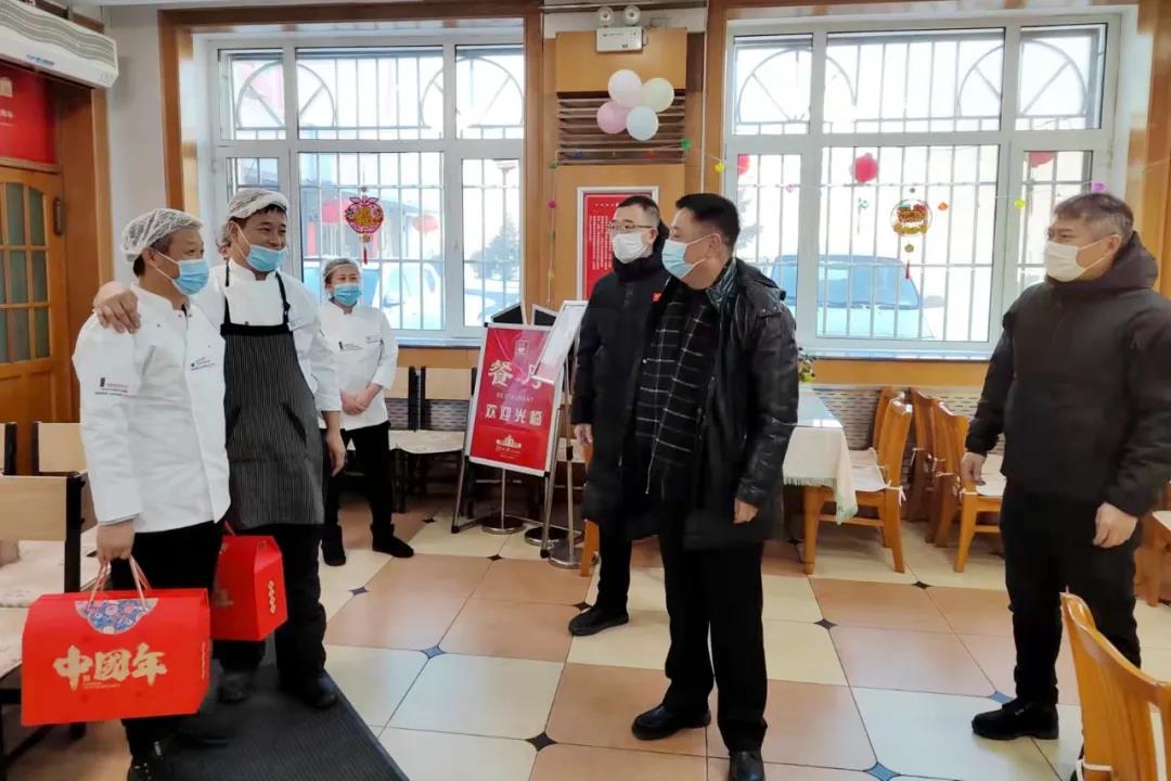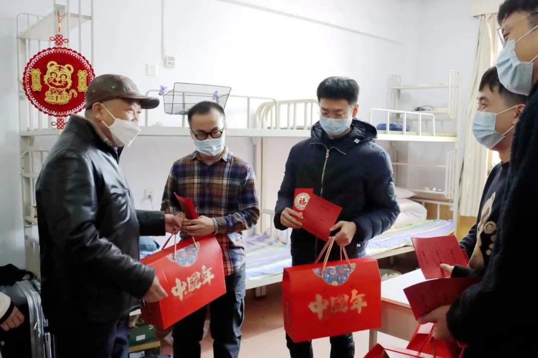 金牛辞岁迎春来,虎跃喜瑞气象新。1月31日上午,正值农历除夕,校领导付宏刚、张颖春、于文秀、井立强、李卓亲切慰问坚守岗位的一线教职工和留校学生,向他们及家人致以节日的问候和新春的祝福,并送上慰问品。学校相关单位负责同志等陪同慰问。
