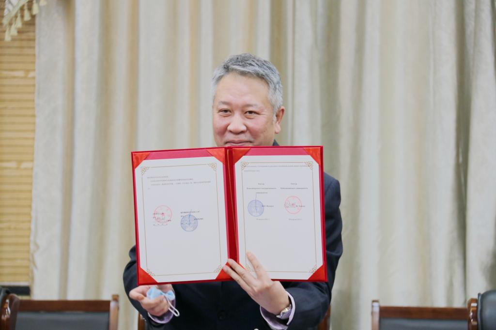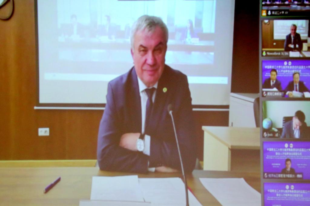 4月28日下午,我校与俄罗斯新西伯利亚国立大学联合人才培养协议续签仪式以视频会议形式举行。新西伯利亚州教育部长谢尔盖·弗拉基米洛维奇·费多尔丘克,黑龙江省教育厅一级巡视员姜广福、对外合作与交流处处长于子超,新西伯利亚国立大学校长米哈伊尔·彼得洛维奇·费多鲁克、副校长斯维特兰娜·根纳季耶夫娜,我校校长付宏刚,副校长严明、井立强出席签约仪式。本次仪式由我校国际文化教育学院、国际合作与交流处党总支书记姜晶玲和新西伯利亚国立大学对外教育处处长叶甫盖尼·伊万诺维奇·萨盖伊达克主持。