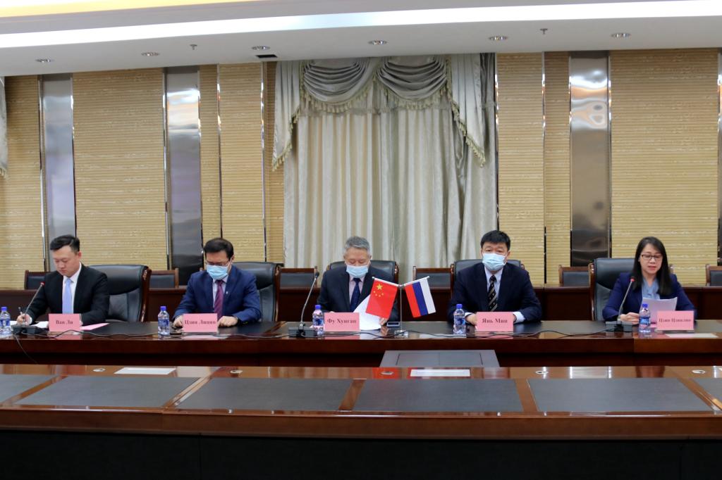 新西伯利亚国立大学相关学院院长、专业负责人,我校相关职能部门和学院的负责同志、师生代表在线上参会。(摄影:贺鑫 李长欣)