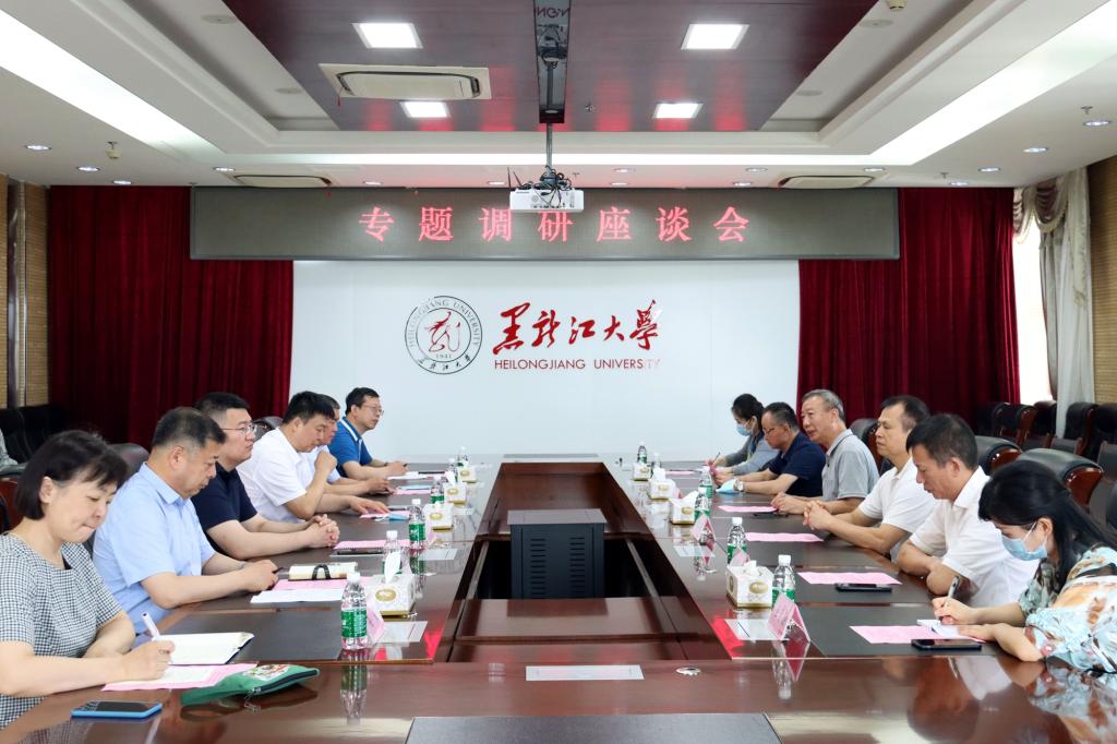 7月3日上午,广西壮族自治区政协港澳台侨和外事委员会主任谢迺堂一行到黑龙江大学调研。黑龙江省政协港澳台侨和外事委员会副主任王廷利、黑龙江大学副校长严明,学校办公室、相关学院负责同志参加调研座谈。