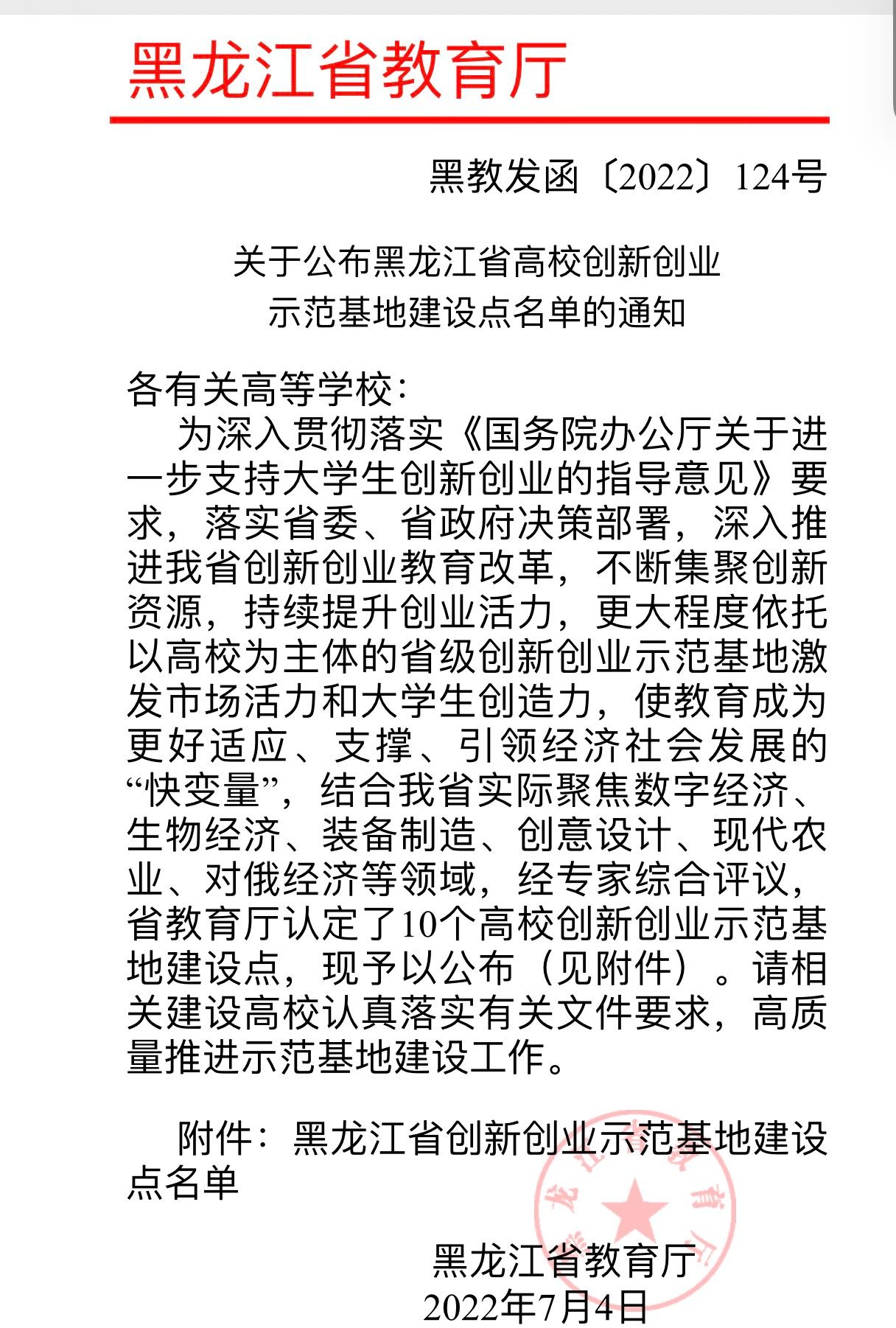 7月4日,《黑龙江省高校创新创业示范基地建设试点名单》公布,我校成功入选黑龙江省高校创新创业示范基地,这是继“省级共享型示范建设基地”后,学校整合校内优质创新创业资源,不断拓展产教融合新领域,再创新创业领域取得的又一重要阶段性建设成果。