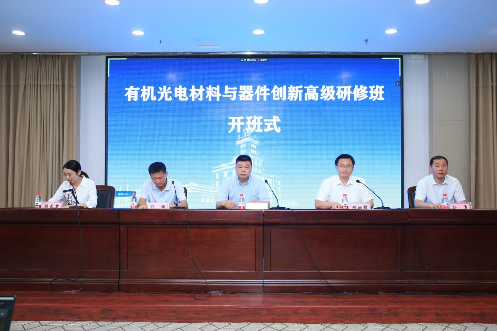 7月12日上午,由化学化工与材料学院、继续教育学院共同承办的“有机光电材料与器件创新高级研修班”在金鹤宾馆正式开班。来自全国各高校、科研院所和相关企业线上线下100余人将参加为期五天的集中培训。副校长严明、南京邮电大学有机电子所所长、主讲专家陈润锋、化学化工与材料学院院长许辉、继续教育学院院长孙勇等领导出席开班式,会议由化学化工与材料学院韩春苗教授主持。
