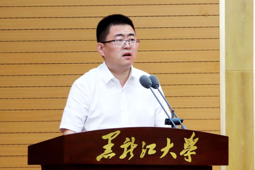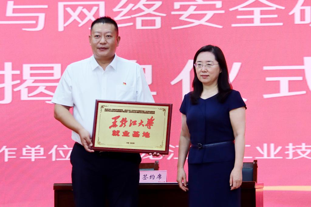 校党委副书记丁宏向黑龙江航天信息有限公司授牌“黑龙江大学就业基地”。