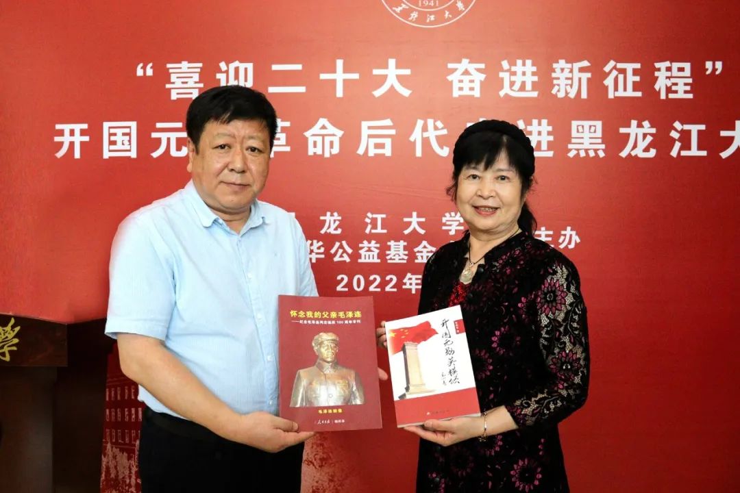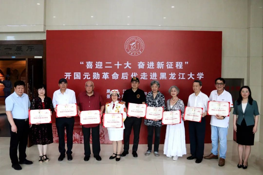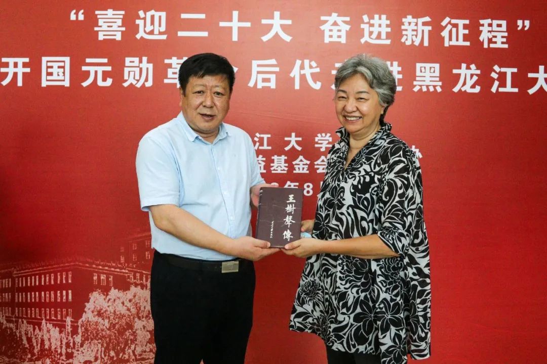 为进一步巩固党史学习教育成果,让红色基因代代相传,8月10日下午,毛泽东侄女、中国关心下一代红伟爱国主义教育基地执行主任毛小青,朱德外孙刘武,王树声之女王宇红,刘亚楼之子、四野后代联谊会会长刘煜滨,东北抗联、东北野战军后代,景华公益基金会会长张景华等开国元勋革命后代走进黑龙江大学。校党委书记王永清、党委副书记丁宏,以及学校办公室、党委宣传部负责人陪同调研。