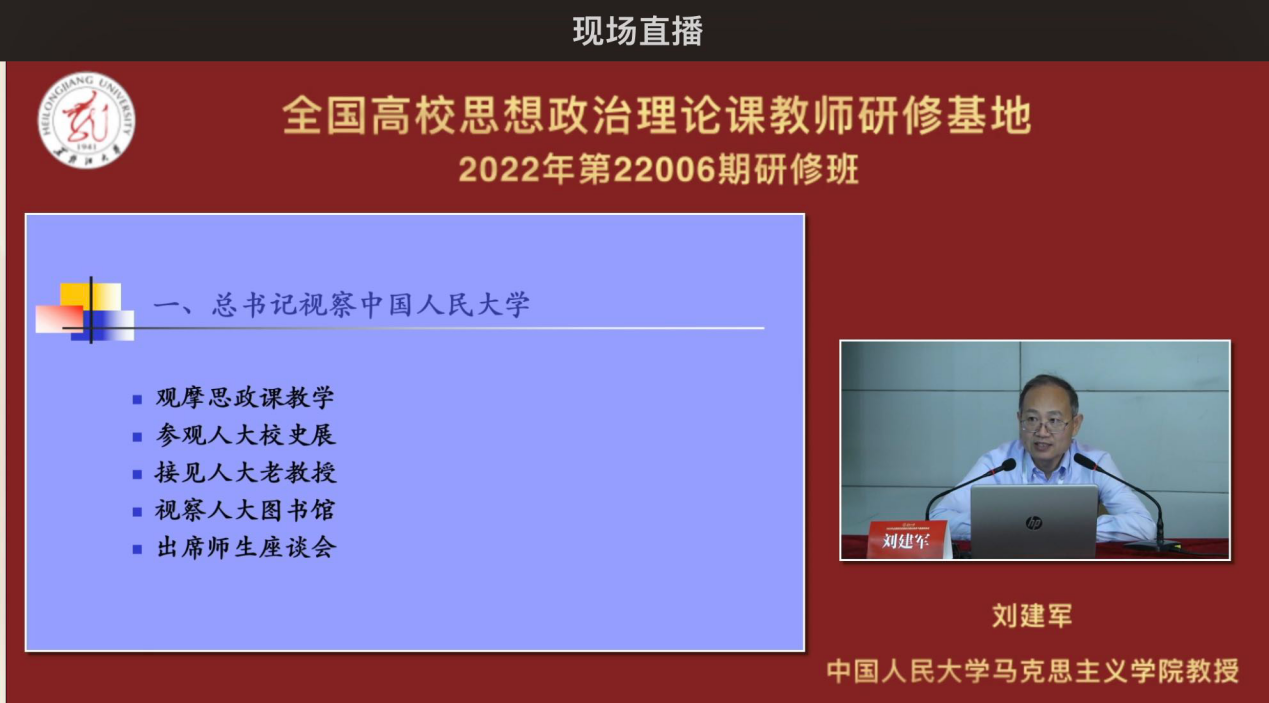 黑马克思主义学院党总支书记王培军宣读了研修纪律并预祝本次研修圆满成功。随后,王秋院长宣布开班式结束,培训研修工作正式开始。此次研修培训的理论教学全程在教育部基地研修平台同步直播,受到全国思政课教师的广泛关注。