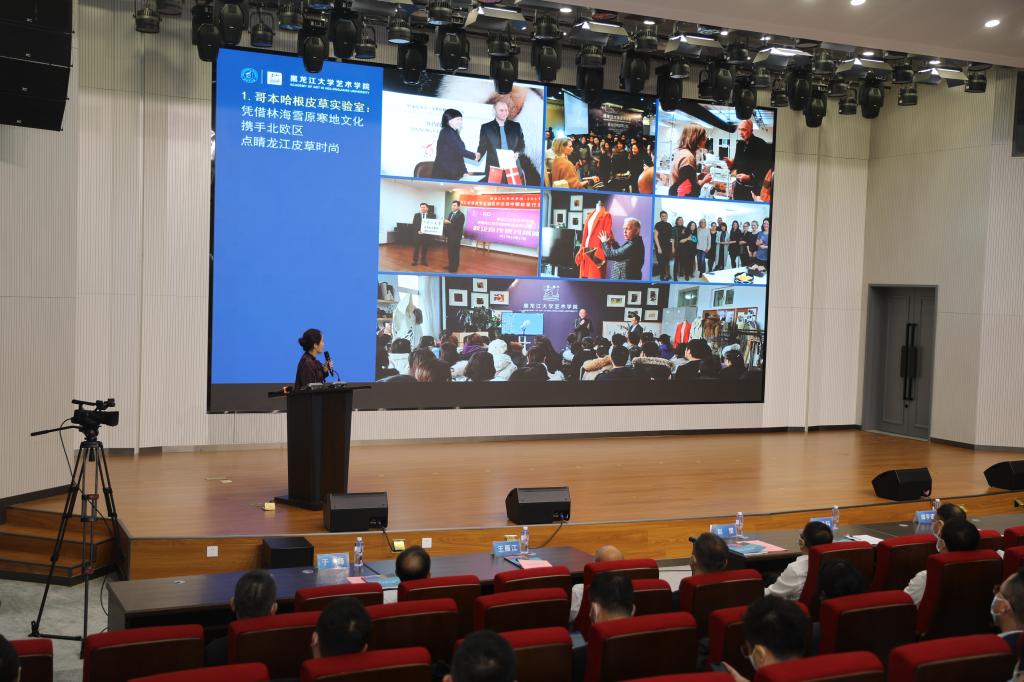 我校党委常委、副校长李卓带队参会并见证签约,会上艺术学院院长于冠超做了“黑大数字化创意设计中心服装设计能力”的专题汇报,我校寒地服装服饰研究中心与KC皮草的校企合作实践和创意设计转化作为典型案例在大会上进行分享。