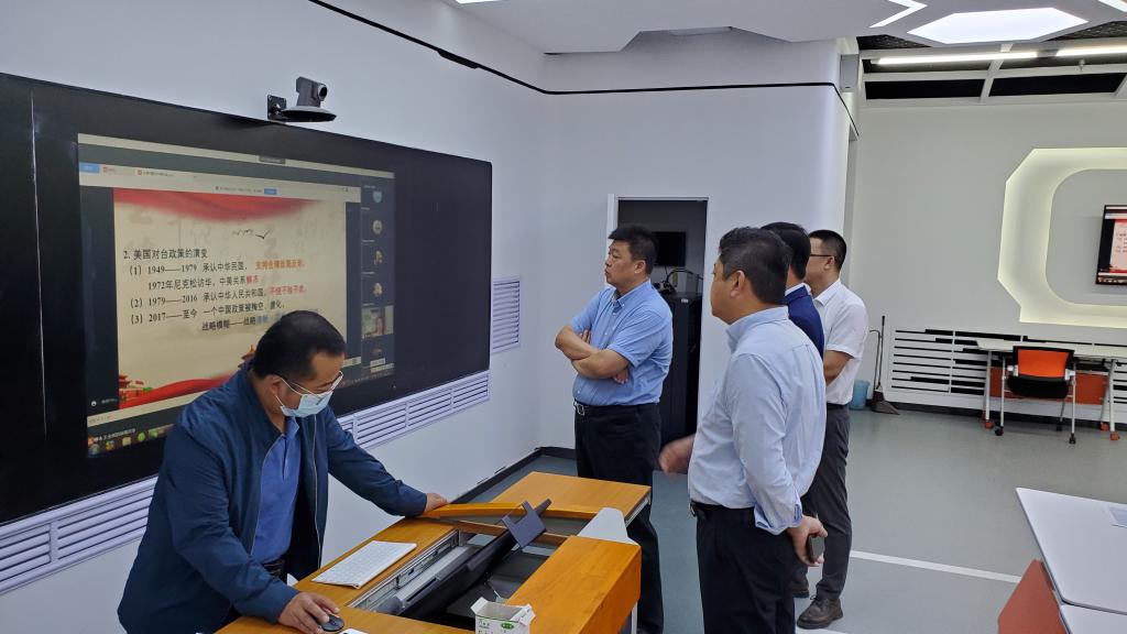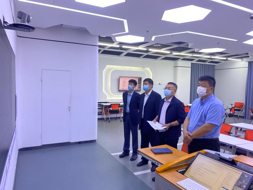 根据《高等学校新冠肺炎疫情防控技术方案(第六版)》指导内容和省教育厅《关于做好2022年秋季学期高校开学时段疫情防控工作的通知》,我校从8月29日开始实行线上教学。副校长严明在主楼A座一楼智慧教室对线上教学情况持续进行检查。