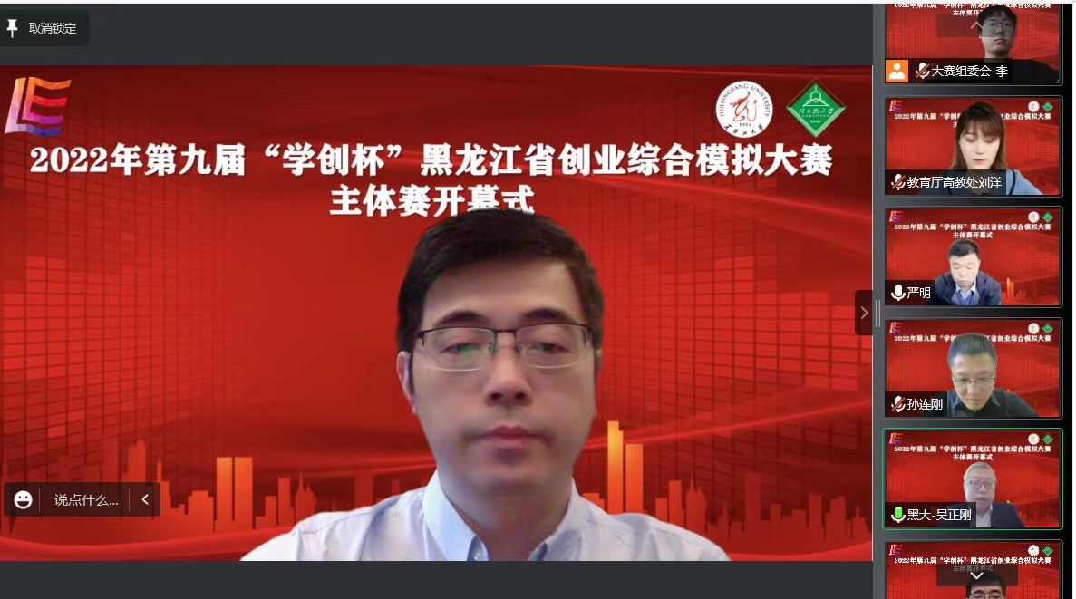 9月25日,由黑龙江省高等教育学会主办、黑龙江大学承办的2022年黑龙江省“学创杯”大学生创业综合模拟大赛成功举办,本次大赛由贝腾教育集团提供技术支持。黑龙江大学副校长严明、省教育厅高教处刘洋、贝腾教育集团黄林董事长及全省48所高校300余名师生参加了大赛开幕式。开幕式由我校创业教育学院孙连刚院长主持。