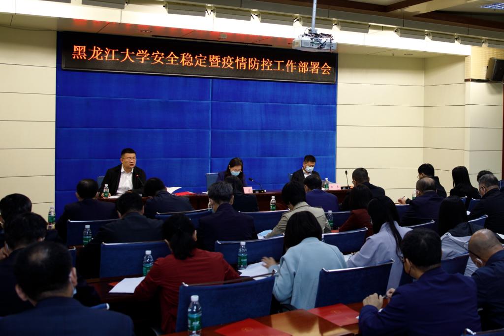 9月30日,我校在主楼A座226会议室召开安全稳定暨疫情防控工作部署会,传达上级有关文件精神和会议要求,并对近期学校重点工作进行再要求、再部署、再落实。校党委副书记丁宏、副校长李卓,以及全校各单位主要负责人参加会议。会议由学校办公室主任周成刚主持。