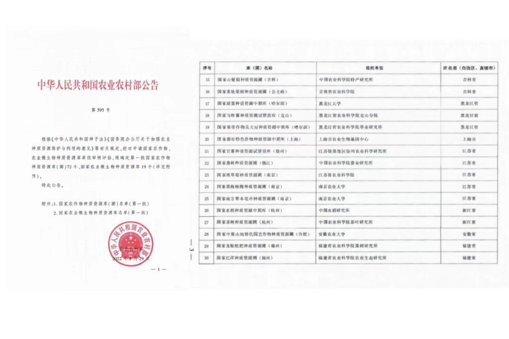 2022年8月,我校“甜菜种质资源中期库”入选第一批国家级农作物种质资源库。