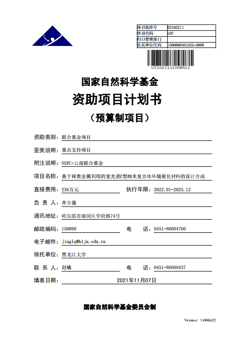 2021年,国家自然科学基金云南联合基金,基于稀贵金属利用的宽光谱Z型纳米复合体环境催化材料的设计合成。