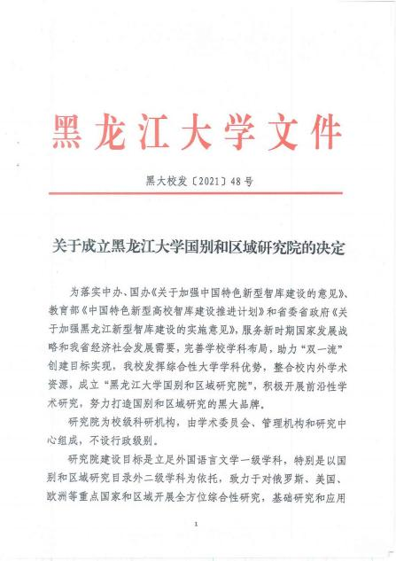 2022年6月,黑龙江大学国别和区域研究院成立。