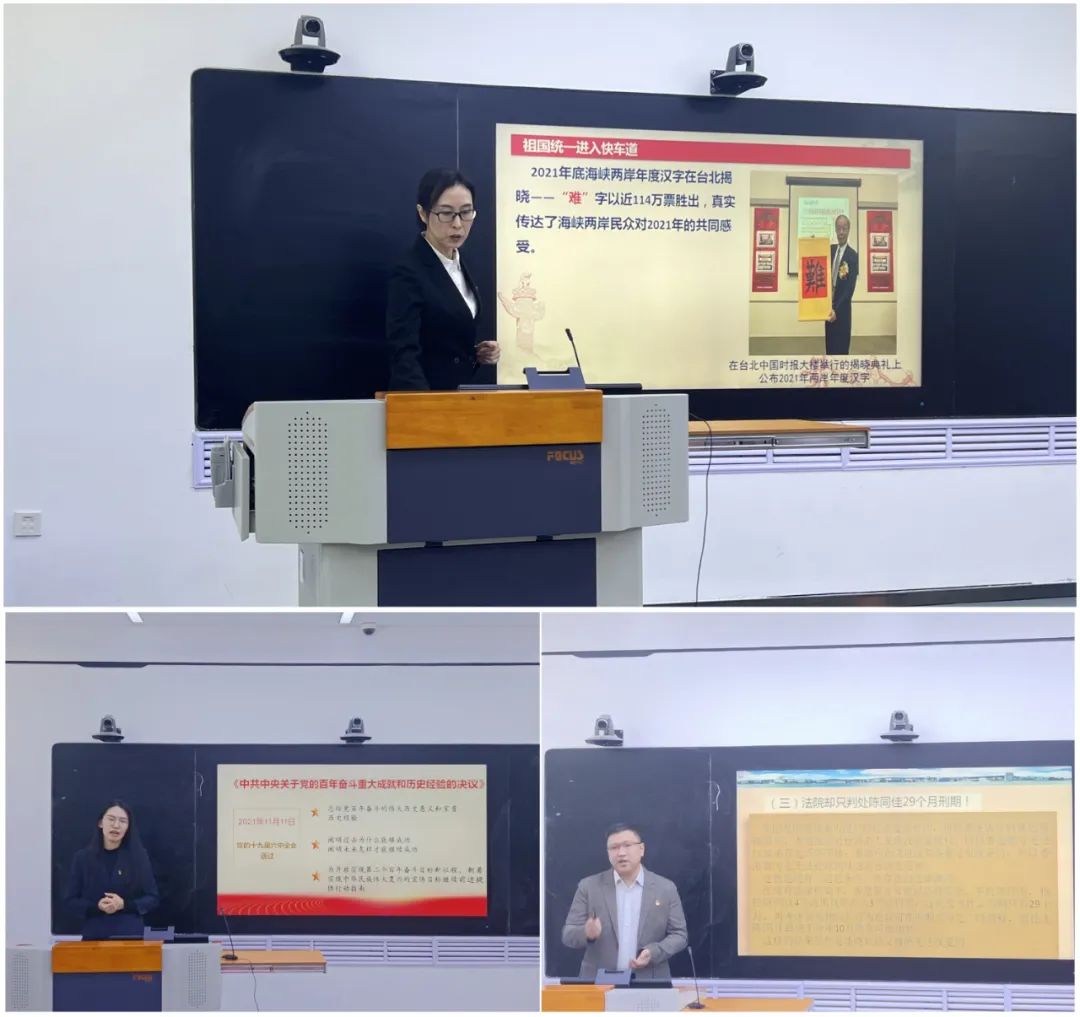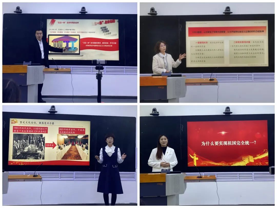 为更好地学习贯彻党的二十大精神、积极探索党的二十大精神进教材、进课堂、进头脑的新途径、新模式、新方法,结合上级关于新时代加强思政课建设的具体要求,进一步提升全校思政课教师立德树人、铸魂育人水平和能力,持续增强思政课的思想性、理论性和亲和力、针对性,本着“以赛促教、以赛促研、以赛促建、以赛促改”的目标,10月26日,我校举办第二届思想政治理论课教师教学能力大赛。校党委副书记丁宏,教务处处长吴华洋、校工会副主席崔建,马克思主义学院班子成员、全体专兼职教师以线上线下相结合的方式参与此次活动。比赛由马克思主义学院院长王秋主持。