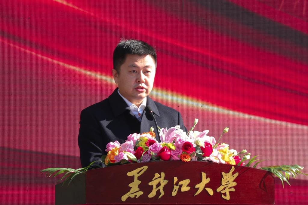 王永清在仪式上致辞。他代表学校向给予新文科新工科大楼项目筹建支持、工程建设、施工和监理的各级单位表示诚挚的敬意,向辛勤工作的各位同志表示亲切的慰问。王永清指出,新文科新工科大楼建设项目能有效破解实验用房紧张等瓶颈问题,极大改善学校办学条件,为学校夯实新文科新工科专业建设基础、加快培养紧缺人才、增强服务国家战略和地方经济社会发展能力、提升办学影响力提供了重要的载体和契机。王永清表示,新文科新工科大楼的建成将为黑龙江大学教育发展增添新地标,在后续施工中学校期望与参建各方和全体参建人员一道再接再厉,继续保持项目建设热情,继续发扬团结合作、锐意进取精神,确保新文科新工科大楼早日顺利竣工,让省委省政府放心,让广大师生满意,向党的二十大献礼。