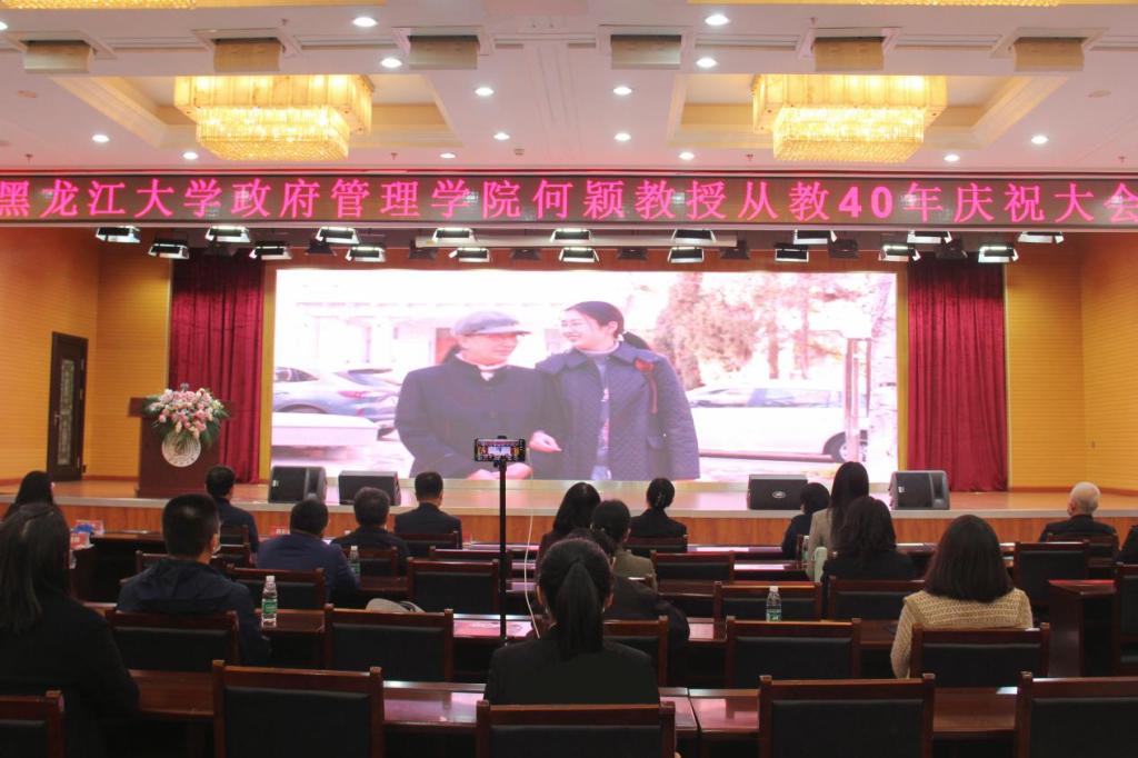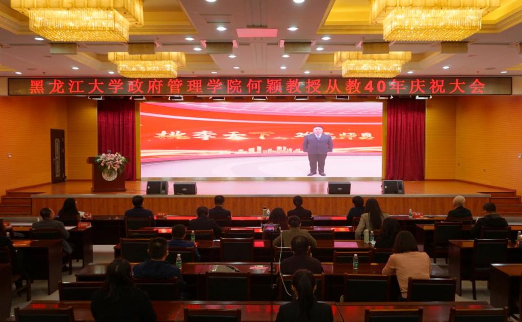 岁月不居,时节如流,立德滋兰树慧,师者榜样;传道授业,四十华年,育才桃李芬芳,誉满龙江!为庆祝何颖教授从教四十载,弘扬学院尊师重道的优良办学传统,政府管理学院于10月28日下午14时在主楼一楼报告厅举办“立德滋兰树慧,育才桃李芬芳”何颖教授从教40年庆祝大会。本次庆祝大会由院党委书记郑岩、副院长付传主持。副校长李卓出席会议,学院全体师生、各地校友通过“线上+线下”相结合形式参会,直播在线观看人次达2000余人。