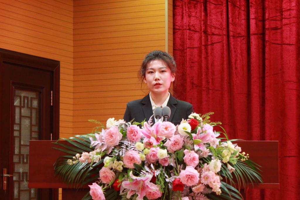 政府管理学院在校生代表陈宁上台发言。作为学院2020级在读博士生,陈宁表达了对何老师深厚学识的崇敬之意与悉心育人的感激之情。作为青年学子,她讲到,当代青年生逢其时,施展才干的舞台无比广阔,实现梦想的前景无比光明,而何老师心中为师生打造高标准发展平台的梦想是永恒的。师者,传道授业解惑也。何老师为学生们带来的不仅是渊博的学识,更是受用终身的为人之道。作为学生,未来之路定将勇于创新又立足当下,时刻谨记恩师的教诲,在求学路上百尺竿头更进一步。