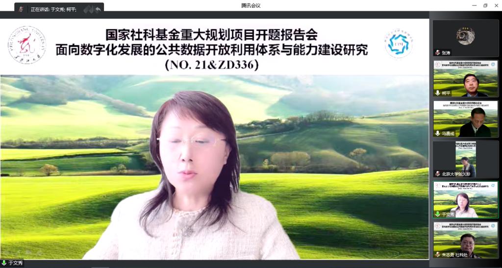 11月5日,国家社科基金重大项目“面向数字化发展的公共数据开放利用体系与能力建设研究”开题报告会在线上顺利举行。省委宣传部二级巡视员周美胜,副校长于文秀,“面向数字化发展的公共数据开放利用体系与能力建设研究”开题专家组,项目首席专家、子项目负责人,社会科学处相关负责同志出席会议。社会科学处副处长朱志勇主持会议。