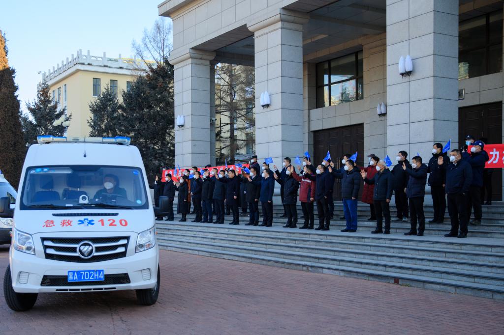 11月13日上午8时,我校在主楼广场举行驰援队伍欢送仪式。哈尔滨市委副书记、市长张起翔,省教育厅厅长陈延良,哈尔滨市政府党组成员、一级巡视员方政辉,哈尔滨市政府副秘书长刘明宇,省疾控中心副主任张剑峰、哈尔滨市国资委主任许庄,南岗区委副书记、区长高洪旗,哈尔滨市公安局副局长王彤,哈尔滨市卫生健康委副主任栾枫,学校全体在校校领导、相关部门负责人出席欢送仪式。校党委书记王永清主持欢送仪式。