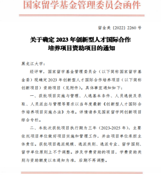 为加大对一流大学和一流学科建设的支持,进一步推动国内外合作培养创新型国际化人才和基础学科人才,国家留学基金委(留基委)设立并实施创新型人才国际合作培养项目。2022年9月,留基委启动2023年项目申报工作。根据留基委政策导向,经前期调研,我校确立了组织相关特色优势学科联合申报的工作思路。在水利电力学院和法学院联合申报团队的精心论证下,在国际合作与交流处的联络指导下,我校申报的“‘一带一路’到‘冰上丝绸之路’寒区水文、生态环境、法学创新型人才合作培养项目”通过专家组评审,成功获批国家留学基金委2023年创新型人才国际合作培养项目特色高校专项。项目执行期为三年(2023年—2025年),资助经费预计400万元。创新型人才国际合作培养项目是我校国家公派出国留学项目的最新突破,将进一步拓宽我校以对俄办学为特色,全面向北开放的创新型国际化人才培养路径。