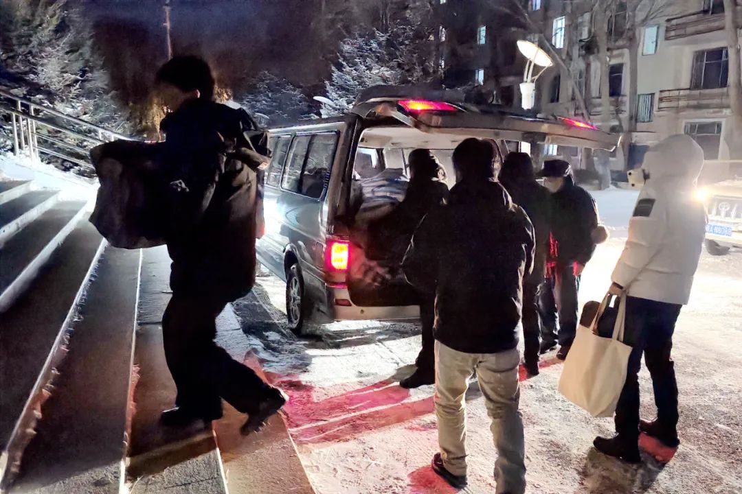 12月的哈尔滨,室外温度已经是零下20多度。安全保障部的老师和研究生志愿者们一大早便到达集合点布置入场通道,等待引导考生入场。