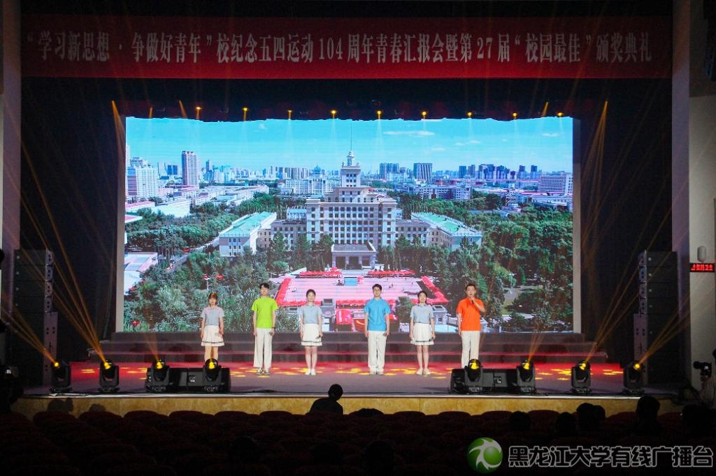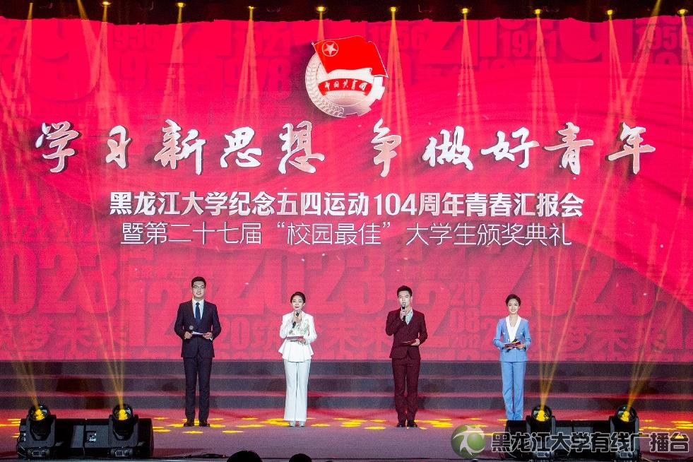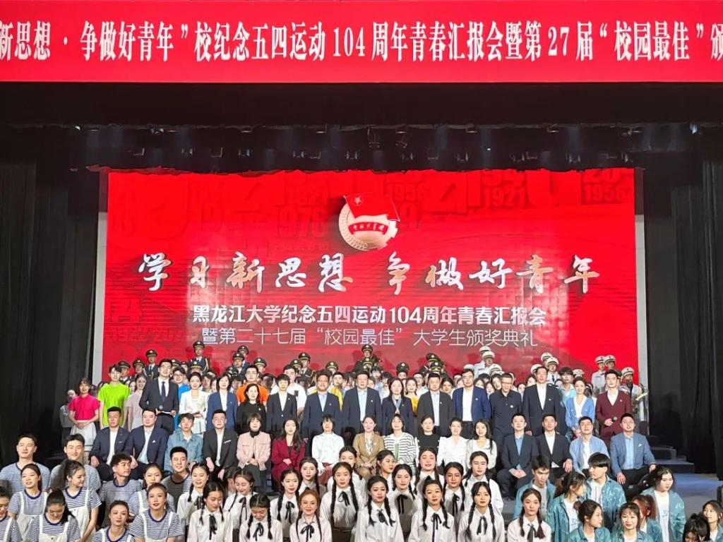 学习新思想,争做好青年,青春心向党,建功新时代。为深入学习宣传贯彻党的二十大精神,纪念五四运动104周年,引导广大青年听党话、跟党走,做有理想、敢担当、能吃苦、肯奋斗的新时代好青年,4月26日下午,我校在音乐厅举行“学习新思想 · 争做好青年”纪念五四运动104周年青春汇报会暨第27届“校园最佳”颁奖典礼。省委主题教育第十六巡回指导组、全体校领导、各职能部处负责人、各学院师生代表出席活动。本次活动通过黑龙江大学官方微信视频号进行同步直播。
