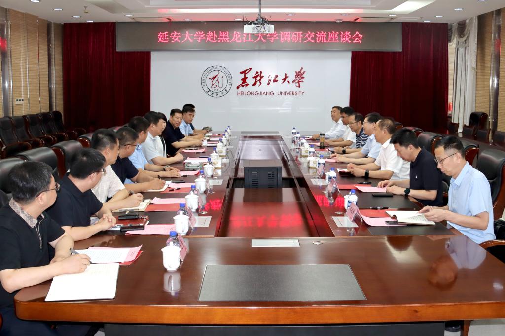 王永清代表学校向调研组一行的到来表示热烈欢迎,并详细介绍了黑龙江大学的办学情况和经验体会。他指出,我校与延安大学同根同源,是中国共产党在延安时期亲手创办的红色大学,具有优良的革命传统和光辉的办学历程。他强调,我校将继续秉持平等互利、合作共赢的原则,向延安大学学习,充分发挥黑龙江大学俄语学科优势以及马克思主义理论研究专长,整合双方优势资源,不断拓展双方在学科建设、人才培养等方面的共建合作。他希望,双方密切沟通联系,进一步推进两校的学术文化交流与人才培养合作交流,将“延安精神”贯彻始终并发扬光大。