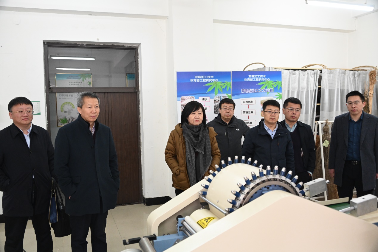 于文秀一行实地考察了国家市场监管技术创新中心(工业大麻)、黑龙江省农用生物制剂产业化协同创新中心、植物性食品加工技术教育部工程研究中心和寒区麻及制品教育部工程研究中心等科研创新平台,相关负责人介绍了平台建设运行、科研成果转化、社会服务等方面情况。