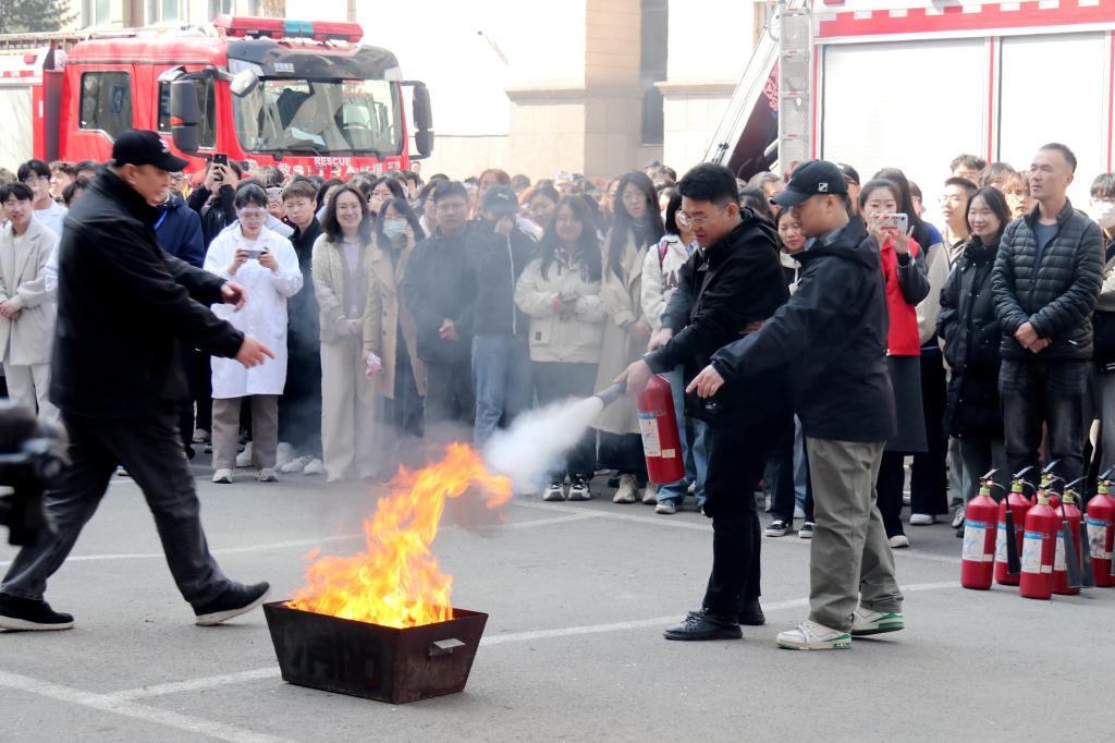 消防逃生疏散演练结束后,哈西消防救援中队的教官向同学们详细介绍并示范灭火器的使用方法及操作要领,并指导同学们进行实战灭火演练。同学们踊跃参加,按照讲解要求,逐一判断风向、选择站位、使用灭火器进行灭火操作。