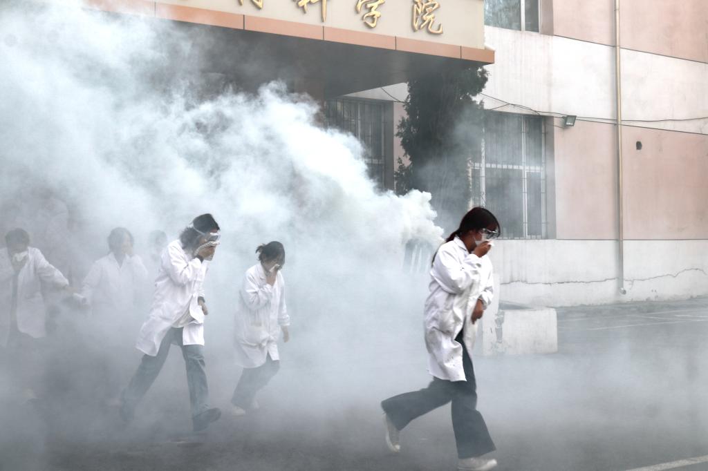 上午9时30分许,李卓副校长宣布演练正式开始。按照活动方案,首先进行了消防逃生疏散演练。化学化工与材料学院334实验室内冒出大量浓烟,值班人员查看并确认火情后迅速摁下消防一键警报,急促的警铃响起,同学们俯身、弯腰、用毛巾等捂住口鼻,穿过浓烟,保持着安全距离,沿着指定的路线快速疏散,近千名学生全部迅速有序地撤离到了安全区域。同时,哈西消防救援中队接到指令,334实验室中有一名被困学生,消防战士立即用救援梯解救被困学生。随后,消防救援人员向同学们展示了喷雾水炮消防车、无齿锯、机动链锯等多类专业设施。
