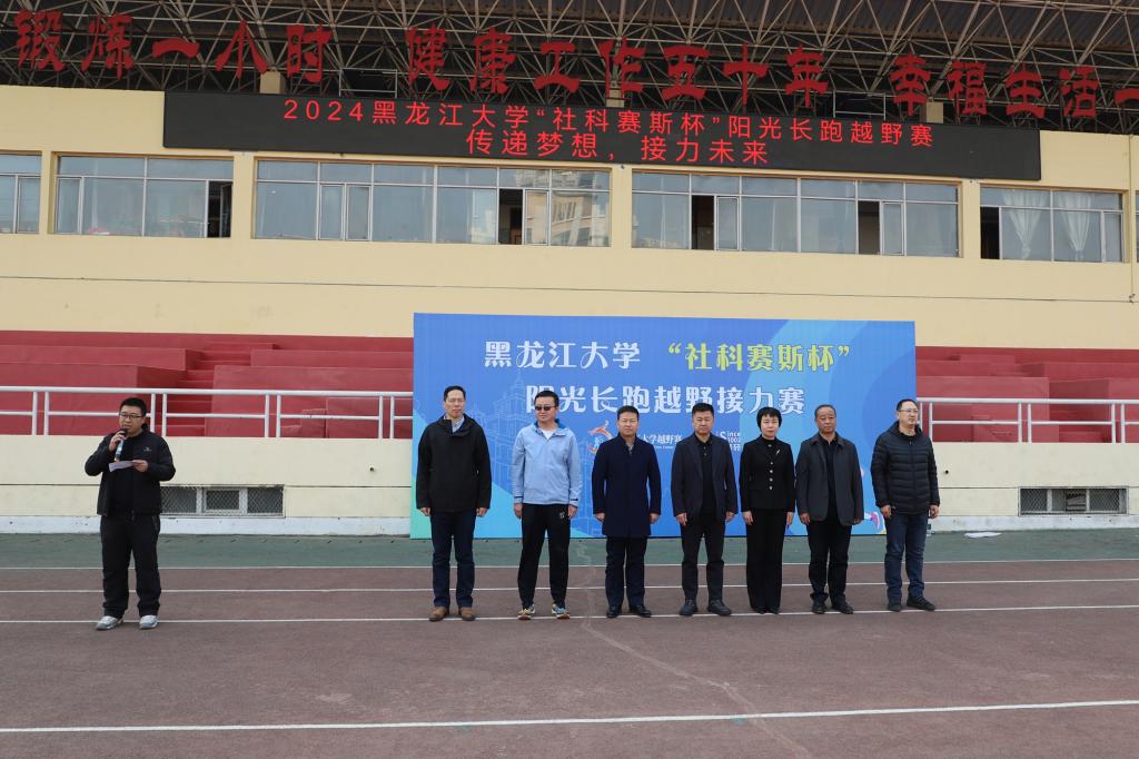 4月10日下午,我校“社科赛斯杯”阳光长跑越野接力赛在2号体育场举行。此次比赛全面贯彻落实中共中央办公厅、国务院办公厅印发《关于全面加强和改进新时代学校体育工作的意见》(中办发〔2020〕36号)精神,旨在推进了黑龙江大学阳光体育工程,传承健康向上体育精神。本次比赛由校体育教学研究部主办,校学生工作部、校团委协办。副校长李卓及学校相关职能部门、二级学院相关负责人出席此次赛事开幕式。