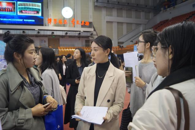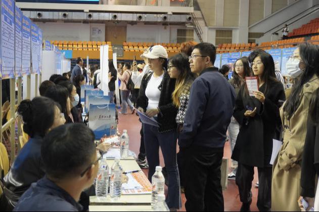 招聘会现场气氛热烈,同学们积极投递简历,主动了解用人单位情况,向用人单位充分展示自己的优势和能力。