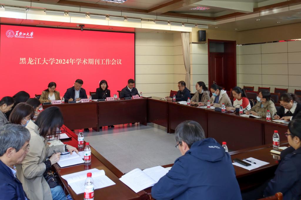 朱志勇在会上传达了上级文件精神,强调了期刊战线管理的重要性。《求是学刊》执行主编李宏弢、《外语学刊》执行主编孙颖、《自然科学学报》主编霍丽华、《俄罗斯学刊》主编靳会新分别就各刊主要业绩成果、存在的问题、未来工作计划进行分享汇报。汇报中展示了我校期刊近两年服务国家战略,顺应学科方向调整取得的新成果以及各刊根据学校高质量发展需要,借助新宣传手段,搭建数字交流平台的成果。