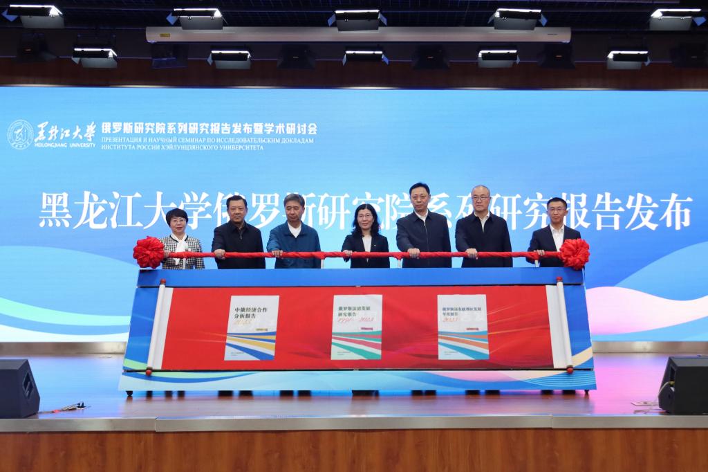 《俄罗斯法治发展研究报告(1991-2023)》《中俄经济合作分析报告(2023)》《俄罗斯远东联邦区发展年度报告(2023)》分别是由黑龙江大学法学院、经济与工商管理学院、俄罗斯语言文学与文化研究中心组织本单位对俄研究力量集体撰写而成,是俄罗斯研究院最新研究成果的一次集中展示。报告的发布,极大提升了黑龙江大学俄罗斯研究院智库研究成果的社会影响力。(俄罗斯语言文学与文化研究中心供稿;摄影:崔心宇 王佳星 陈子扬)