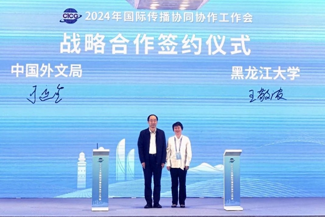 会上,王敬波代表学校与中国外文局副局长于运全签署战略合作协议,同时签约的高校还有中国人民大学和西南政法大学。据了解,我校是中国外文局在东北地区唯一开展全面战略合作的高校。未来,双方将落实习近平总书记视察黑龙江期间关于“构筑我国向北开放新高地”的重要指示精神,就人才培养、科研研究、翻译实践、社会服务和对外交流等方面开展深度合作,通过凝聚各方优质资源、优秀成果和高端智库,更好地服务中俄新时代全面战略协作伙伴关系和龙江经济社会发展,对外讲好中国故事,传播中国声音,展现真实、立体、全面的中国。双方将本着优势互补、强强合作的原则,在外语和翻译人才、国际新闻与传播人才的需求、培养、使用和继续教育方面形成体系,培养党和国家外宣工作大局急需的高素质、高层次人才。双方将共同打造重大项目合作平台,创新国际化新媒体产品,在翻译类和国际传播类重大课题和项目方面实现协同创新,共同开展翻译学科理论与现实问题和对外话语体系建设相关课题研究,共同开展重要项目的翻译和研究工作。双方将共建多语种翻译实践平台、局校合作特色示范基地,共同搭建高端智库对话平台,为国家对外开放和经济发展提供更多智力支撑和政策咨询。双方还将联合举办高级翻译与国际传播领域的高端国际论坛,并开展相关国际交流项目。我们相信,与中国外文局的战略合作必将进一步强化我校对俄办学特色,推动外语、翻译和区域国别学科的高质量发展和内涵式建设。