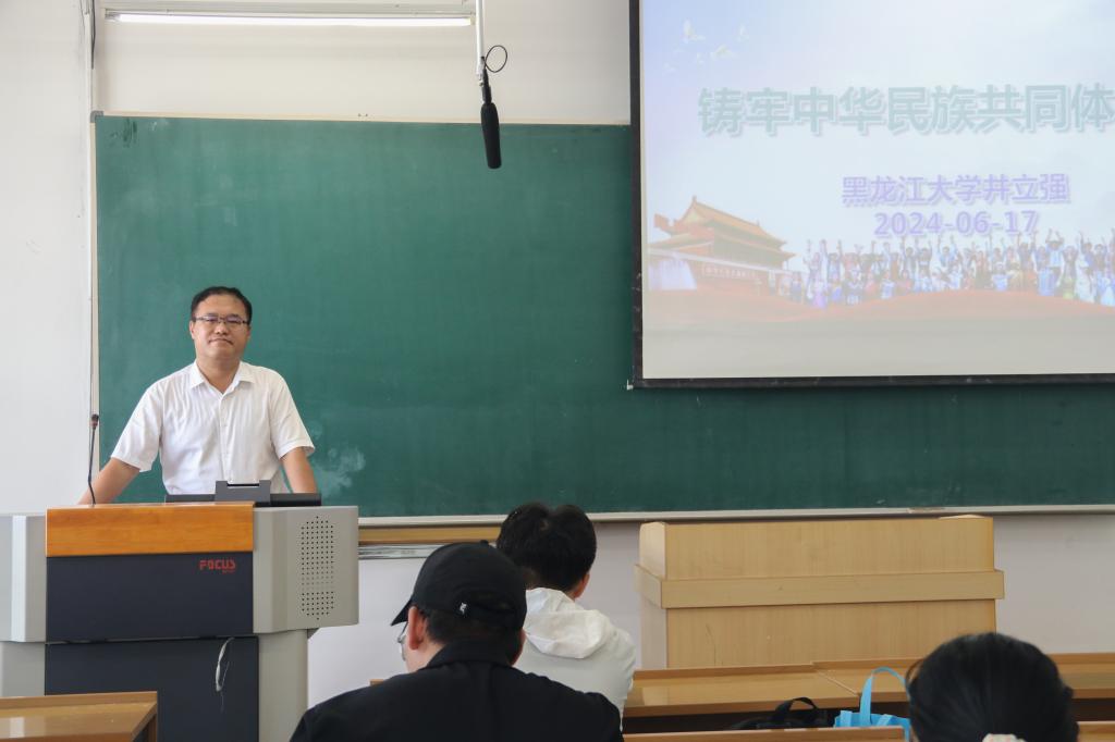 课上,井立强以“铸牢中华民族共同体意识”为主题,从铸牢中华民族共同体意识的战略意义、把握中华民族共同体意识的丰富内涵、铸牢中华民族共同体意识的实践路径三个方面进行系统讲解。他指出,在当今百年未有之大变局的背景下,铸牢中华民族共同体意识的重大论断,是基于中华民族伟大复兴进入新时代的历史方位,以鲜明的问题意识和底线思维为先导,为新时代党的民族理论发展举旗定向,有力促进了民族政策法规的调整完善和民族工作的健康发展。他希望通过思政课的学习,同学们能够学通、弄懂党中央关于加强和改进民族工作的重要思想,深刻学习习近平总书记关于铸牢中华民族共同体意识的重要论述,切实增强政治自觉、思想自觉、行动自觉。