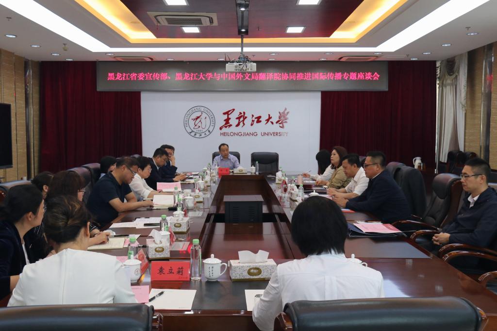黄玉龙介绍了中国外文局翻译院的业务格局和在推进国家和地方国际传播工作中发挥的作用。他指出,此次座谈会是三方务实合作的良好开端,也是落实习近平总书记在对宣传思想文化工作重要指示中提出“着力加强国际传播能力建设、促进文化交流互鉴”的重要举措。他表示,中国外文局翻译院愿与黑龙江省委宣传部、黑龙江大学一道,一体化推进翻译及国际传播工作,深入挖掘并传播具有黑龙江特色的新时代中国故事,展现中国式现代化的独特面貌。