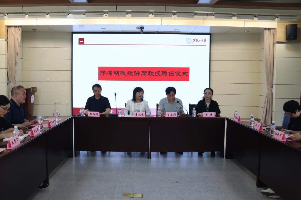 6月27日上午,我校在主楼A226会议室举行郑炜明教授讲席教授聘任仪式、罗慧专职研究员客座教授聘任仪式暨黑龙江大学国学发展研究基金捐赠仪式。副校长于文秀出席活动并致辞,人事处、校友服务中心、哲学学院、文学院、历史文化旅游学院、满学研究院、艺术学院的相关负责同志及师生参加活动,本次仪式由国学院院长丁立群教授主持。
