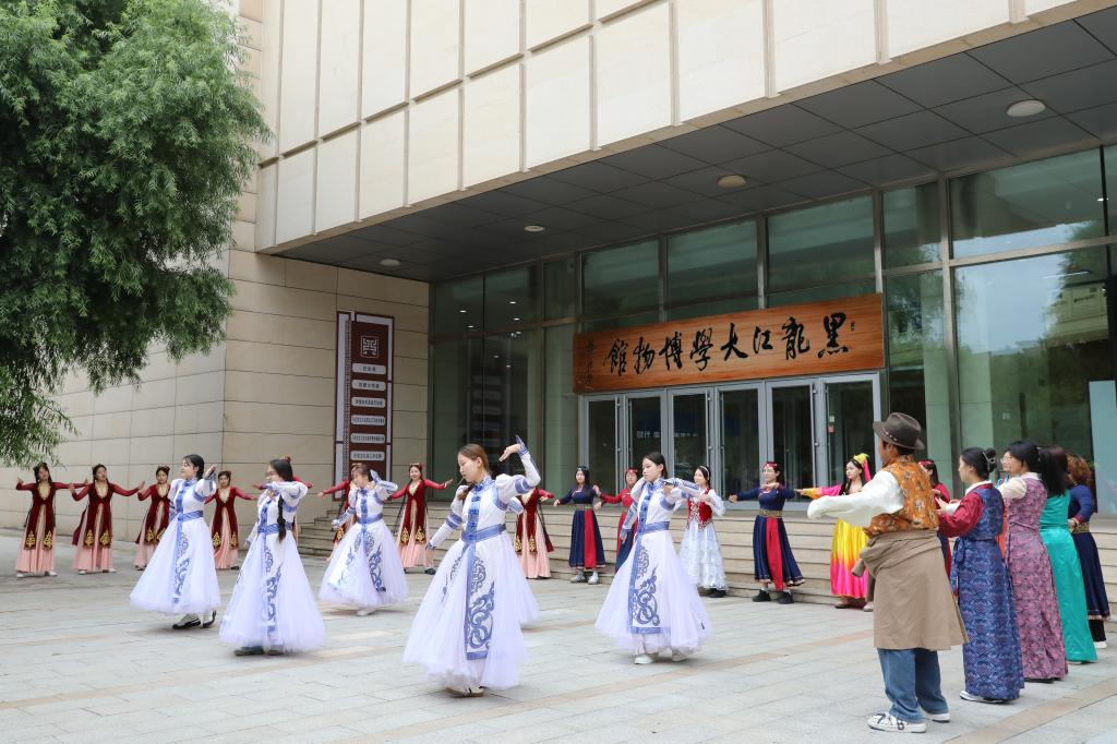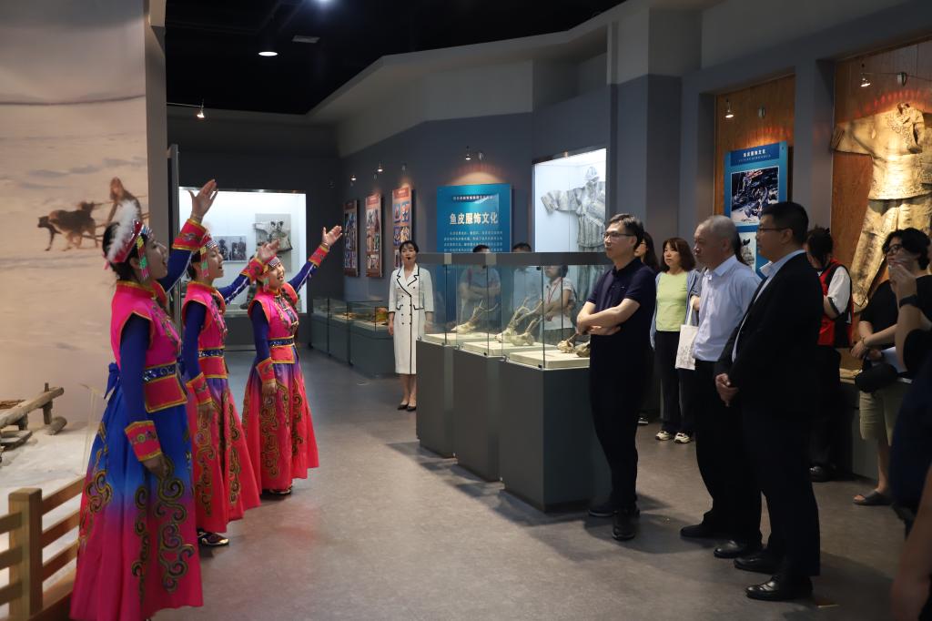 交流研讨活动前,党委书记迟宝旭陪同调研组一行来到黑龙江省高校铸牢中华民族共同体意识教育实践基地(黑龙江大学博物馆),先后参观了学校铸牢中华民族共同体意识工作展、学校校史展、龙江流域馆藏文物展。调研组对学校“强化四融四聚,构筑铸牢中华民族共同体意识工作新高地”的民族工作创新实践和工作取得的成效给予充分肯定,希望学校放眼全局、立足长远,将人才、学科、科研优势转化为推动铸牢中华民族共同体意识、促进民族团结进步的生动实践。调研期间,调研组还观看了学校“红柳”少数民族学生工作室学生团队的民族舞蹈表演和非遗赫哲族嫁令阔传承创新团队的原创歌曲表演唱。(摄影:孙晟伟、葛佳勒、李行)