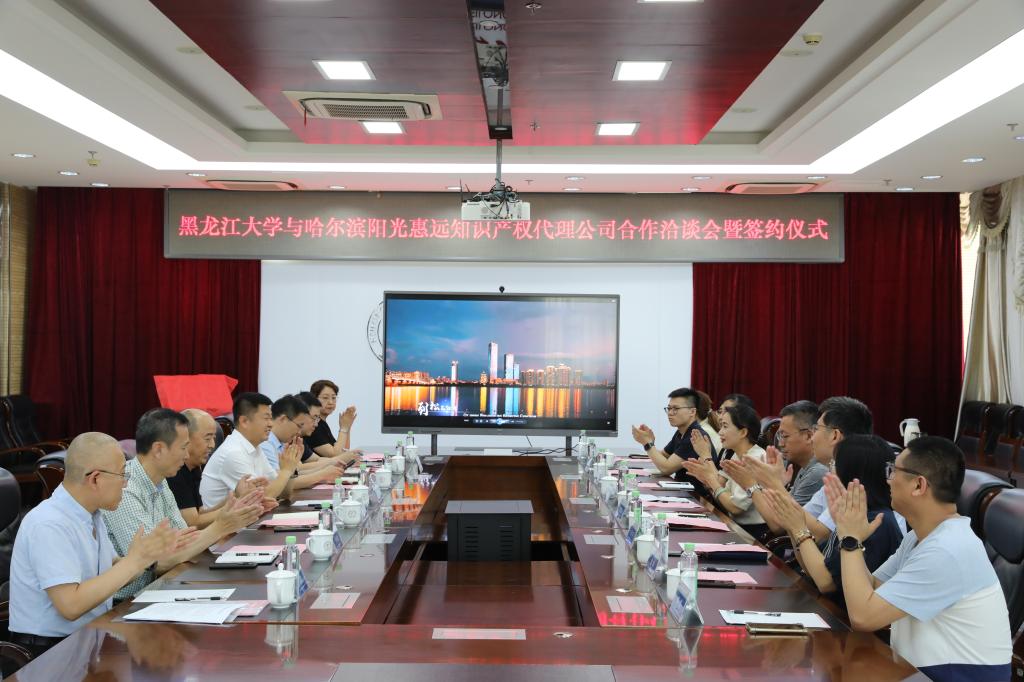 7月8日下午,我校与哈尔滨阳光惠远知识产权代理公司举办合作洽谈会暨签约仪式。副校长李卓、省知识产权局副局长邓璐、哈尔滨阳光惠远知识产权代理公司总经理邓宇出席洽谈会和揭牌仪式,科学技术处、图书馆等部门相关负责同志陪同。