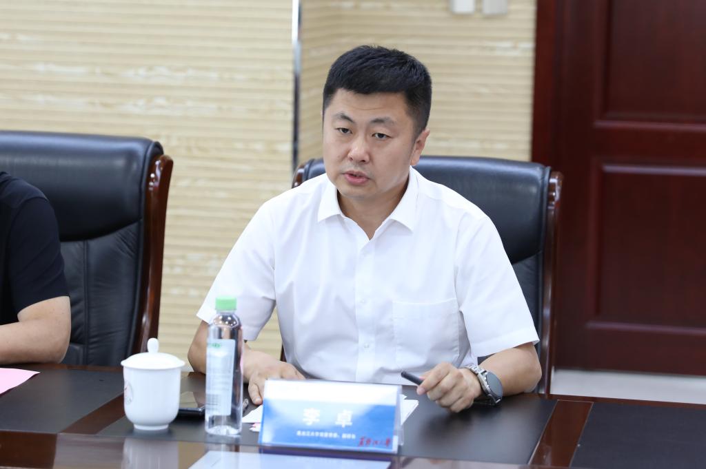 李卓在致辞中对邓璐副局长带领企业送服务上门表示感谢,详细介绍了学校的学科设置、办学思路、科研情况及近期围绕新质生产力开展的一系列工作。他对阳光惠远公司与我校的合作表示赞赏,对公司向我校的捐赠表示感谢,希望双方在产业发展、成果转化等领域进一步拓宽合作。
