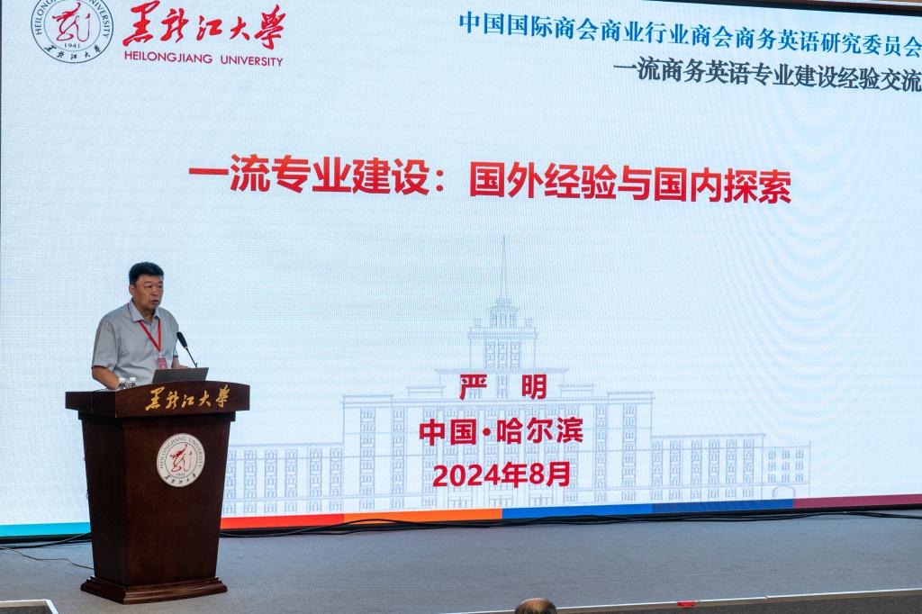开幕式上,副校长李卓发表致辞。李卓介绍了黑龙江大学的历史沿革和外语学科特色,对中国国际商会商业行业商会商务英语研究委员会对黑龙江大学的信任和支持表示感谢,对莅临本次会议的专家、学者表示热烈欢迎。他表示,期待通过本次会议能与各高校的领导嘉宾、专家教授以及同仁们深入交流、相互学习,共同探索商务英语专业建设新思路、新方法和新路径。