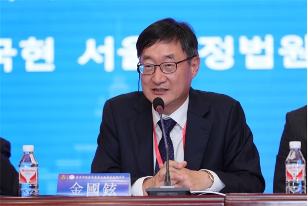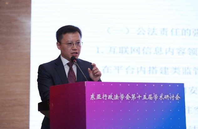 第四单元由高丽大学教授李熙贞和清华大学教授余凌云主持。西京大学教授成奉根就“数字化转型时代行政作用变化研究——从电子政府到数字平台政府的过渡”作主题报告。该报告在评估数字技术发展对公共行政的影响基础上,提出了公共行政在数字化转型时代的前进方向,包括以公民为中心的行政管理、民主结构的发展、个人信息和人权保护的强化、网络安全的加强以及科技立法的完善等。中国政法大学教授赵鹏就“互联网平台治理性公法责任的演进与分析”作主题报告,该报告指出互联网平台治理公法责任的内涵从早期相对粗放逐步发展出“安全保障”、“风险防控”等更具规范功能的概念,讨论了这些规范思路的意义和需要发展之处,并提出需要从法律层面强化对权力行使方式的规范,应当在考虑平台实施大规模用户行为治理、对干预及时性有较高要求、广泛利用技术系统进行自动化规制等特点的基础上,进一步优化规范平台权力的正当程序。