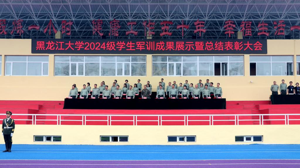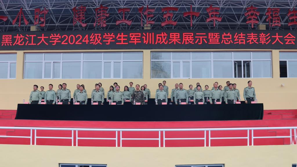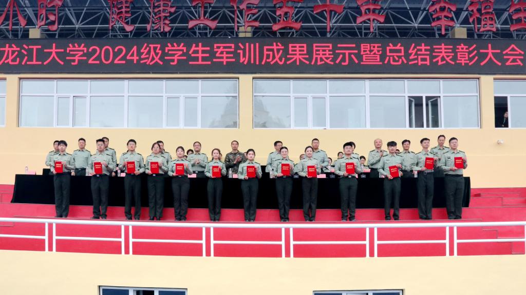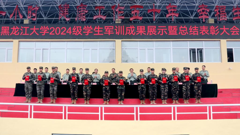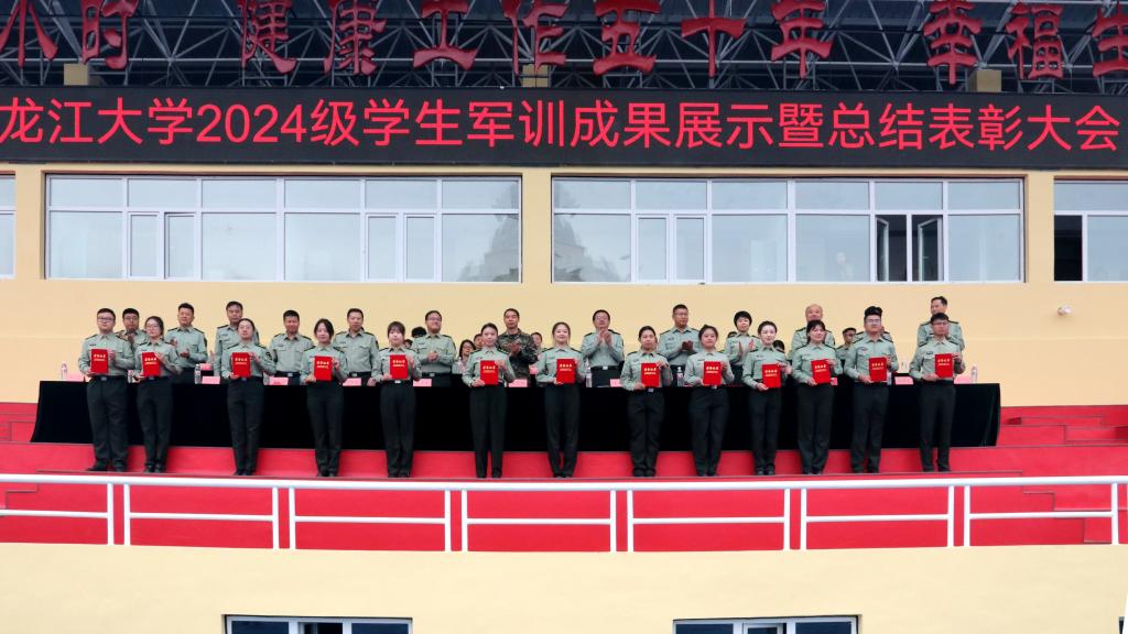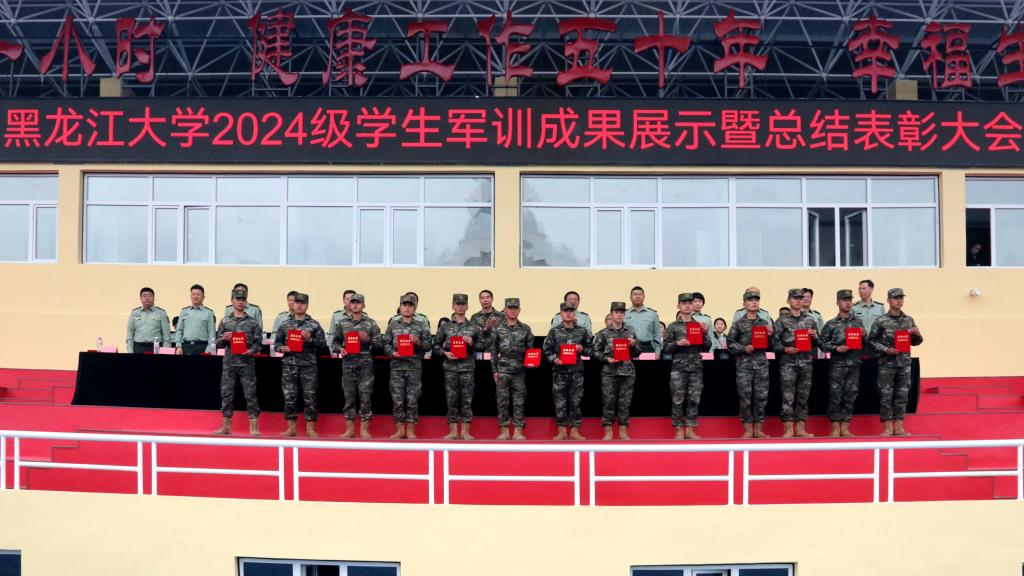 校团委书记、军训师政治部副主任李可宝宣读了黑龙江大学2024级学生军训文体活动比赛成绩。校党委常委、宣传部部长、军训师政治部主任杨其滨宣读了《关于表彰黑龙江大学2024级学生军训先进集体和先进个人的决定》。与会领导为获奖集体和个人颁奖。